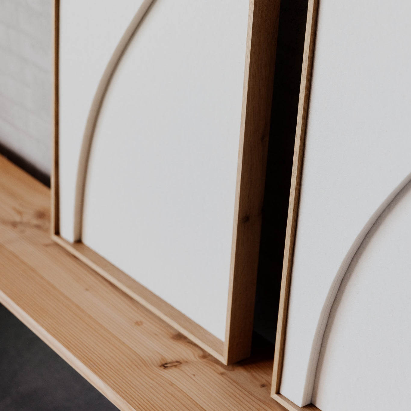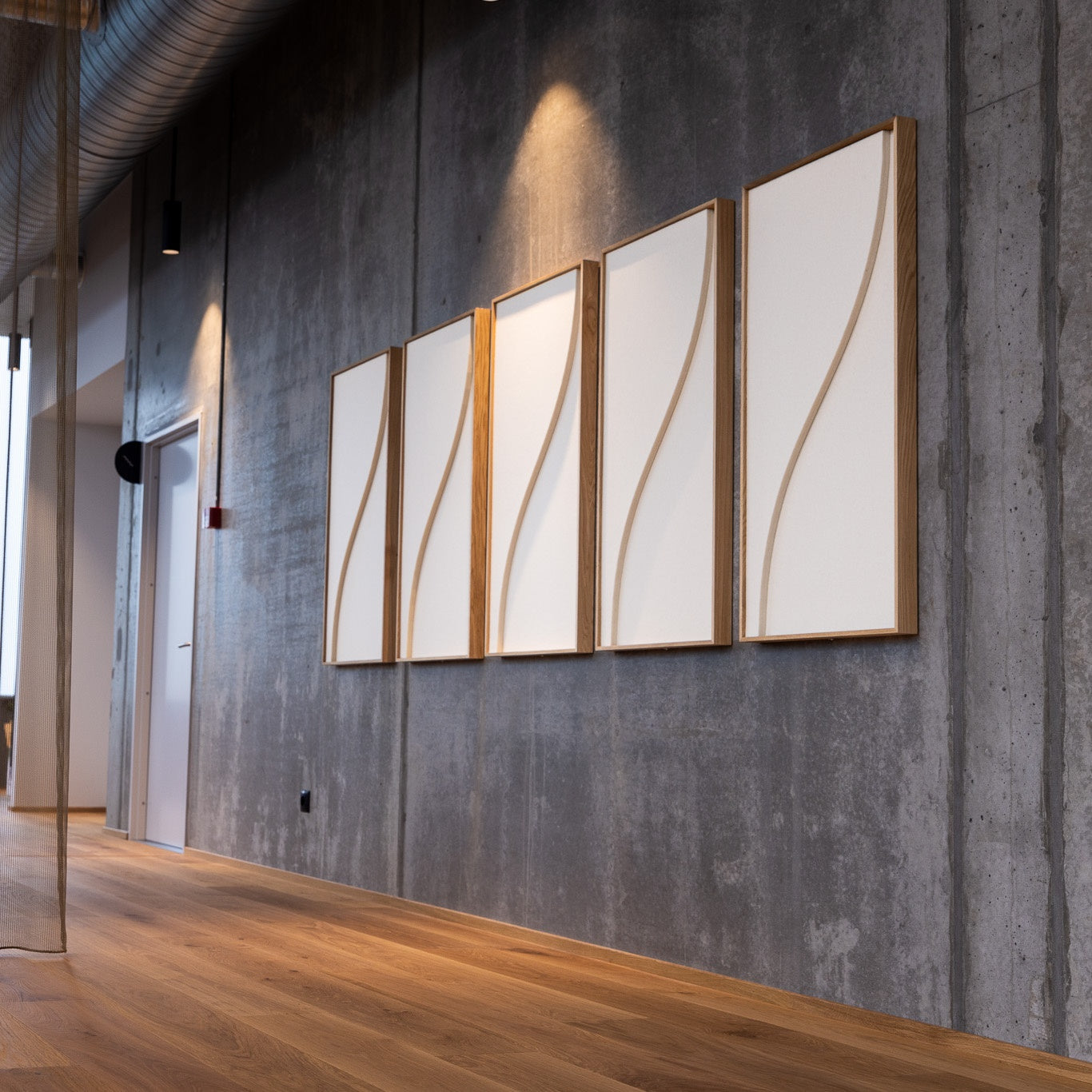 Experience the harmony of art, functionality, and environmentally-friendliness with our Arch - Arturel x Kvadrat collection. These acoustic felt panels are made from recycled textiles from Kvadrat and framed in elegant oak, combining highly effective sound-absorbing felt with a unique artistic expression.
